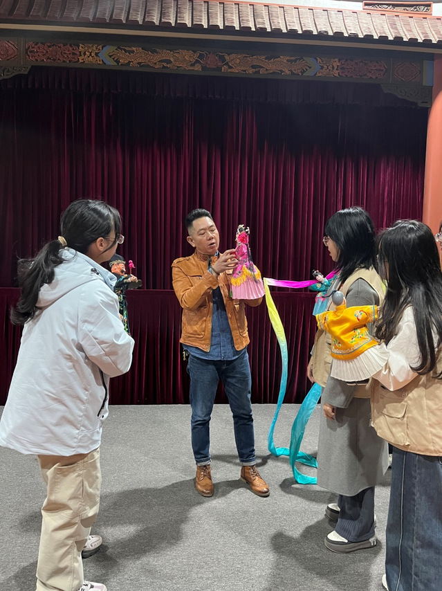 在非遗保护调研方面,实践队先后探访了漳浦剪纸传承工作室、漳浦竹马戏传承保护中心、漳州木偶艺术馆以及漳州芗剧团。队员们近距离观摩非遗技艺展示,与非遗代表性传承人进行面对面交流,详细了解剪纸、竹马戏、木偶戏、芗剧等极具闽台特色的非物质文化遗产的历史渊源、传承现状、保护措施以及创新发展路径,深切感受闽台两地同根同源、丰富多彩的艺术形态与文化魅力,思考非遗项目在促进两岸文化认同与艺术交流中的桥梁作用。