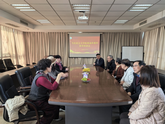 2026年1月8日,马克思主义学院在行政楼8楼会议室召开退休教师新春座谈会,通报一年来学院教学科研工作的进展情况,展望“十五五”期间学院规划蓝图,并对退休教师们为学院发展做出的贡献表示诚挚感谢。